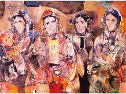 Presque quarante années après Omar Gatlatou, la relation au corps restant problématique en Algérie, l’unité de recherche sur la culture, la communication, les langues, les littératures et les arts (UCCLLA)[15] abordait le 03 février 2014[16] sa place au sein des fictions contemporaines (donc la corporéité), des configurations poétiques ou symboliques (en tant que reconquête du phrasé et de ses éloquences), relatait de ses infections, meurtrissures, blessures ou violences, cela au moment même où un décret ministériel[17] attribuait un statut de victime aux femmes violées par les terroristes. Cette profanation faite au corps, Rachid Boudjedra l’accentue délibérément dans son écriture pour bannir l’imaginaire, les fantaisies et jouissances du moi, provoquer une réaction du lecteur, combler la béance thématique par le libertinage et les invectives, par un verbe ciselé faisant couler la sueur, ouvrant les entrailles ou les viscères. Après Mohamed Dib et Kateb Yacine, l’auteur de La répudiation et de Journal d’une femme insomniaque dira avoir su creuser à son tour le sillon transgressif de la modernité littéraire, être ainsi «(…) le troisième à avoir cassé ses codes (…), les tabous sexuels (et) l’hypocrisie sociale»[18]. İl consacrera quelques lignes de sa graphie aux monotypes de Choukri Mesli, un ex-aouchemite qui avec M’Hamed İssiakhem occupera l’espace ténu de la réclusion féminine et de ses tortures pour, comme Frantz Fanon avant eux, provoquer une désaliénation corporelle et mentale, une préoccupation également connotée au sein des œuvres d’Abdelwahab Mokrani, Mourad Messoubeur (à ses débuts), Nadia Spahis, Kamel Yahiaoui, Samta Benyahia, Salah Hioun, Meriem Aït-el-Hara, Rachid Nacib, Karim Sergoua, Tarik Mesli, Amza Bounoua, Gassouma Jaoudet, Ammar Bouras, Arezki Larbi, Boudjema Zouhir, Hellal Zoubir et Noureddine Ferroukhi. Avec son hybridation picturale faite de préciosités androgynes, ce post-orientaliste (et non pas pro-orientaliste) cristallisera des séductions érotiques menant au paradis des peaux parfumées, aux visions de l’extase, aux fantasmes du non renoncement au corps, aux signes explicites ou allusifs de l’irénisme, à un univers charnel à saisir dans le sens de la plénitude des sentiments , de la splendeur chatoyante du sensuel, d’un décor essaimant une complexité émotive et organique avec tout ce que cela impliquera comme fragmentions, déviances et décentrements narcissiques. Chacun de ses montages accrochés en 1993 sur les cimaises de l’İnstitut Cervantès (Centre culturel espagnol d’Alger), dans l’optique de mieux dialoguer avec Shéhérazade[19], débloquait du cadre rigoriste les chaînes de la virilité en faisant frissonner les zones érogènes d’une musulmane dont le corps-cliché défiait l’ordre fantasmagorique de la Vérité révélée par les sommations exclusives de la domination symbolique et autres dépositaires du tragique fondamental. Avec le collectif Essebaghine, Noureddine Ferroukhi se positionnait en 2000 dans le champ artistique comme avant-corps et lorsque nous l’interviewions dix années plus tard sur cette notion d’avant-garde, le plasticien confiait qu’il fallait «° (…) prendre ce terme comme ressortant d’une expression non galvaudée dans le paysage artistique local. Ce que nous proposions aux publics n’était pas, il me semble, arrivé à saturation dans notre pays où il y avait lieu de poursuivre ce qui ailleurs avait atteint sa finitude historique et conceptuelle. Par exemple, ma démarche plastique axée sur un érotisme débridé et pailleté était loin d’avoir éprouvé tout son potentiel.»[20].