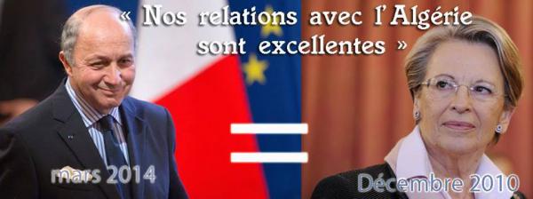 " Les relations algéro-françaises sont excellentes ." est à lire : " les relations avec l'Algérie française sont appétissantes,succulentes et rassasiantes ! "