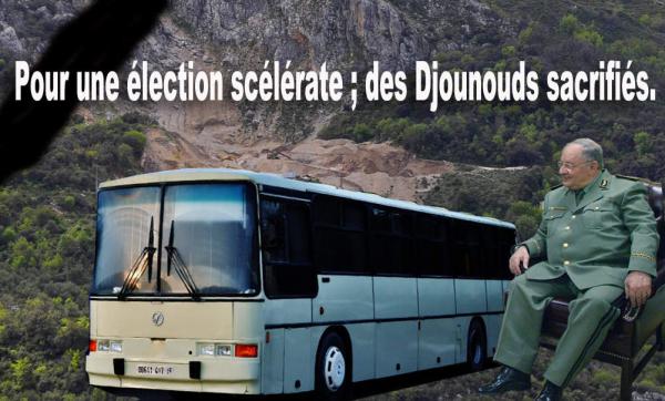 Ce sont, à n’en pas douter, ces politiques qui se trouvent à l’origine de l’assassinat des djounouds en ce 20 avril 2014. Sinon comment expliquer qu’une relève soit transportée dans un bus communal ? Comment expliquer une telle désinvolture, un tel manque de responsabilité ? Les faits sont d’une telle gravité que les conséquences doivent être portées par les responsables politiques, à commencer par le vice-ministre de la Défense dont l’aveuglement pour la réélection de Bouteflika a couté de nombreuses vies juvéniles. Voilà une tâche pour le fameux CIMO. Comité interministériel pour l’opérationnel, qui semble être devenu le barycentre sécuritaire du pays. Mais, dans ce système, il est vain d’attendre que ces messieurs assument des responsabilités qui ne vont pas avec le poste.