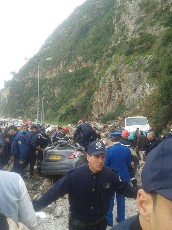 Un bus de transport de voyageurs assurant la ligne Kherrata-Béjaia et quatre véhicules ont été écrasés près du tunnel d’Aokas dans un important effondrement de rochers qui a eu lieu sur la RN9, reliant Béjaia à Sétif. Le bilan provisoire est lourd. Mais contrairement à ce que nous avions annoncé, il est de six personnes décédées et de 14 blessés.