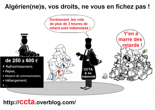 Pour connaître vos droits de passagers et les démarches à suivre afin de réclamer des indemnités (de 250 à 600€) en cas de vol retardé ou annulé, le collectif CCTA organise une réunion publique le 12/09/2015 à 17h00 au :