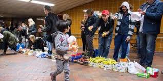 Les demandeurs d’asile, principalement des Syriens fuyant leur pays déchiré par la guerre, étaient partout accueillis par des bénévoles portant des pancartes « Bienvenue en Allemagne » et apportant eau, nourriture, vêtements, couvertures et petits cadeaux. A Munich, principal point de transit du pays, les nouveaux arrivants étaient rapidement conduits vers des centres de premier accueil pour y être enregistrés, avant d’être réacheminés pour certains vers d’autres régions, en vertu du système allemand de quotas.