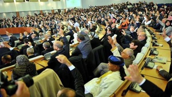 La loi portant révision constitutionnelle a été adoptée dimanche, à main levée, à une majorité écrasante par le Parlement, réuni en session extraordinaire au Palais des nations (Alger), consacrée à la présentation et au vote de ce projet. Au total, 499 parlementaires ont voté pour le projet, deux contre et 16 se sont abstenus.