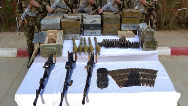 « Dans le cadre de la lutte antiterroriste et en plus du bilan de l’opération menée le 10 mars 2016 à Guemar, wilaya d’El Oued (4e région militaire), un fusil mitrailleur FMPK, 17 charges propulsives pour RPG-7, un chargeur de munitions pour pistolet mitrailleur de type kalachnikov ont été récupérés », précise la même source.