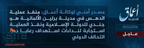 « Un soldat de l’Etat islamique a commis l’opération de Berlin en réponse aux appels à cibler les ressortissants des pays de la coalition internationale », se réjouit l’organisation terroriste.