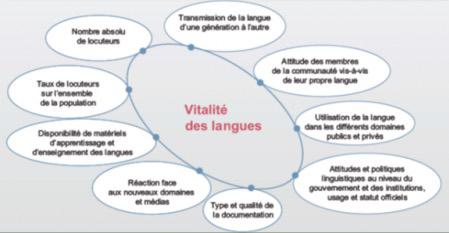 Figure 2 : schéma des critères qui évaluent le danger de disparition des langues [1].