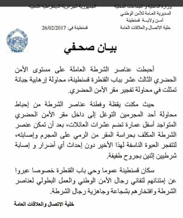 Communiqué de la police de Constantine du 26/02/2017