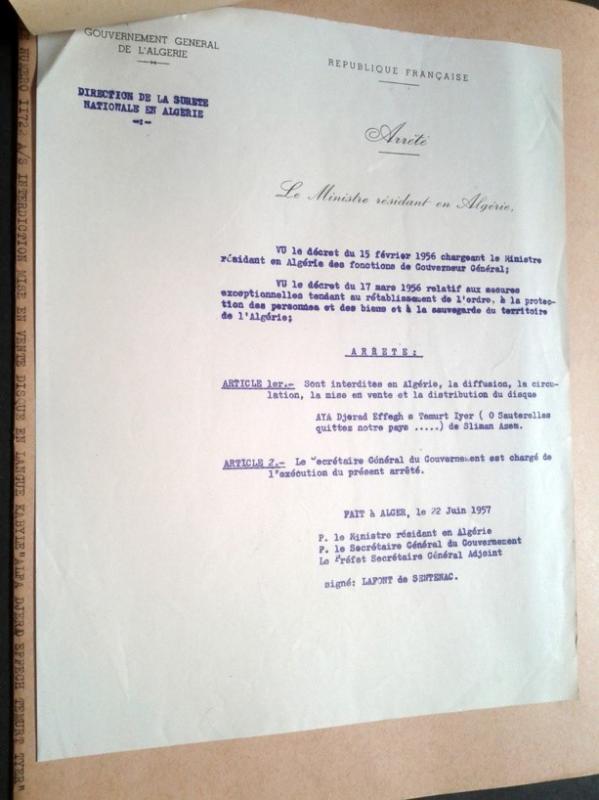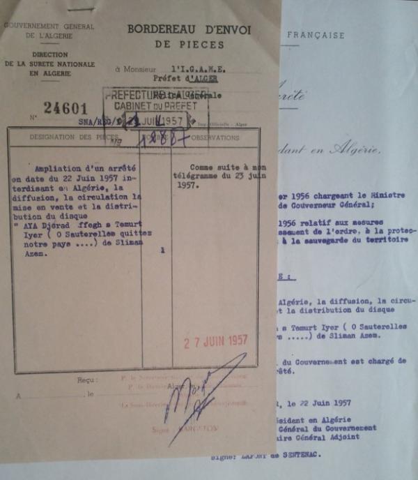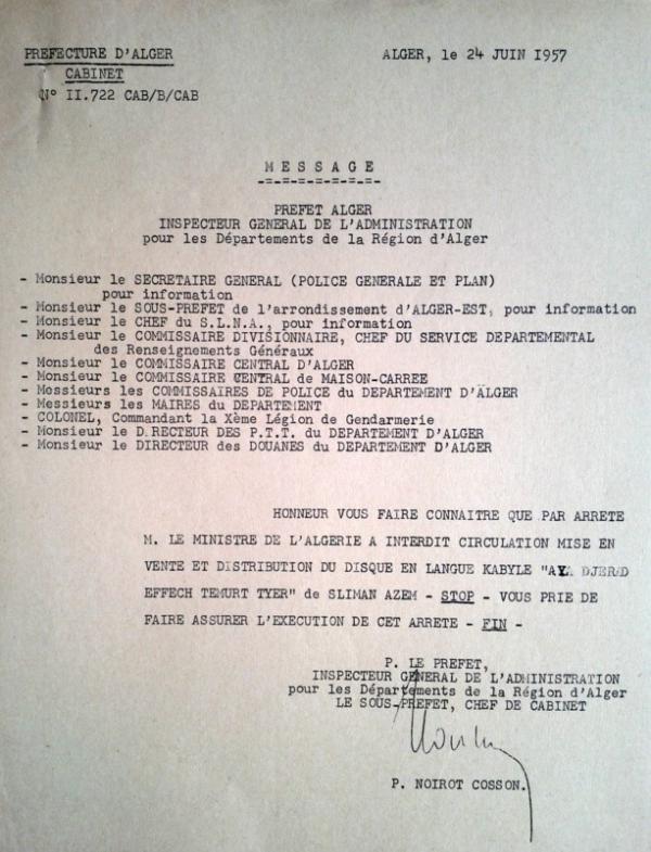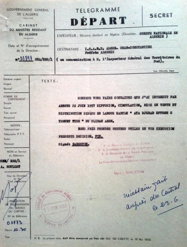 Vous ne devez certainement pas comprendre les paroles de la chanson «Ffeɣ ay ajṛad tamurt-iw» qui a fait l'objet de l'arrêté d'interdiction de 1956, c'est pour cela que vous êtes porté sur le dénigrement et les accusations fallacieuses. Citez un seul autre chanteur Algérien, de son époque, qui a fait l'objet de mesures d'éloignement et de harcèlement comme lui sur la base de ses prises de positions. Faites des recherches et produisez des preuves de ce que vous prétendez. On sait bien que depuis 1999 le révisionnisme est dans l'air du temps, mais ayez au moins la décence d'étayer votre propos. Quant à son frère parlementaire, ils étaient légion à cette époque, Ferhat ABBAS, Khider et tous les élus de Constantine choisit parmi la bourgeoisie locale et les oulémas qui considéraient que la France était " la grande sœur" qui devait montrer le chemin à suivre. Il faut rappeler aussi que sur les 400 milles soldats mobilisés par la France pendant la guerre, 150 milles étaient d'origine musulmane. Ils venaient d'où d'après vous?