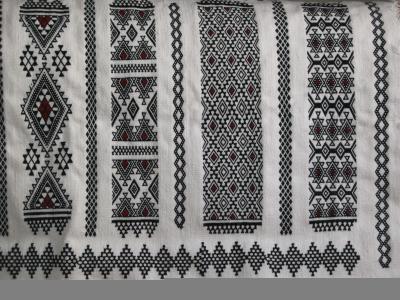 « La laine, provenant de la tonte des moutons , après avoir subi plusieurs opérations se transforme en Asdil, Axellal, Abarnus, Absane, Takdift,… C’est une tradition typiquement berbère. Les tissages d’Aït-Hichem sont généralement ornés de motifs géométriques s’exécutant à la main avec sept (7) fils colorés. Ces symboles sous formes rectiligne sont tissés à l’aide des fils fins de couleurs blancs sur un fond sombre, bleu indigo, rouge garance, vert olive ou brin foncé. Comme la vannerie et la poterie, ces motifs sont fortement décorés qu’on les croyait brodés. S’ordonnant en véritables textes idéographiques. Ils renferment en filigrane des petits triangles de laine rouge, jaune ou brin claire sobrement colorés disposés en bandes transversales le plus souvent en bordures le long des grands côtés du rectangle », explique le document.