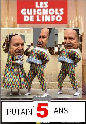comment ose t il dire je salue mon frere zeroual a batna, comment signifie allez voter mais ne votez pas pour moi, lorsqu’il lui est demandé le certificat medical pour son dossier de candidature il déclare je ne suis pas malade, comment il ordonne à tous ses sbires de ministres a leur tete leur premier mouton de faire campagne pour lui comme on le constate ses jours sans oublier les petits chacal de parti qui sillonnent toutes les villes et villages, il veut un taux de 80 % pour une victoire de la honte alors qu’il promet mont et merveilles, c’est plutot un cauchemar supplementaire qui nous attend, la fermeture de tous les cabarets, bars, cafes, theatre, cinemas, avec le retour du fis bis il n’y aura plus de parabole puisqu’un projet de loi est en preparation sans parler de la tele….., et nous allons continuer a fumer du the pour 5 ans de cauchemar quotidien, avec nos suicides, et nos haragas et la poursuite de ces heros de journalistes qui tiennent encore la flamme de l’honneur de ce pays.