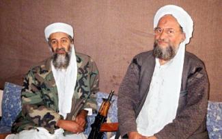 (Photo : Ayman al-Zawahiri aux côtés de son chef de file, Oussama Ben Laden. Photo datée du 8 novembre 2001.)
