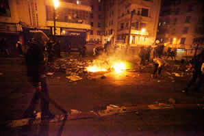 A Bab El Oued, reprise actuellement des affrontements. Les rues principales sont occupées par les jeunes manifestants. De nombreux foyers d’incendie sont visibles sur les routes barricadées.