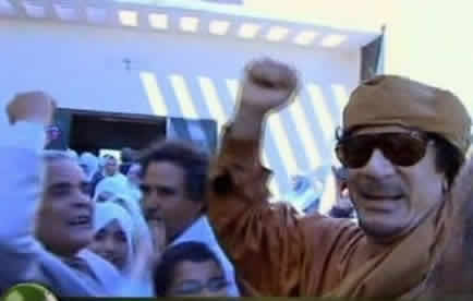 Pour Kadhafi, apparaître au milieu d’écoliers enthousiastes, c’est montrer que la coalition ne parvient pas à faire tomber son régime, qu’elle est dans une impasse après trois semaines de frappes aériennes.