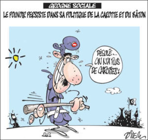 5. A suivre l’intervention du Doyen des Ministres, un pur produit venu des profendeurs de:B.T.T.S, et, à l’image de tous les adeptes du parti unique au pouvoir, depuis le 19 MARS1962, je disais donc, voit le mal partout!!! Est-ce de la PARANO??? Ou, plutot une diversion stratégique, pour étouffer nos Adolescents, et par la meme occasion, essayer d’étouffer l’ardeur des syndicats Autonomes de la fonction publique, en général!!!… Ton nom serait déja, dans la poubelle de l’histoire!…