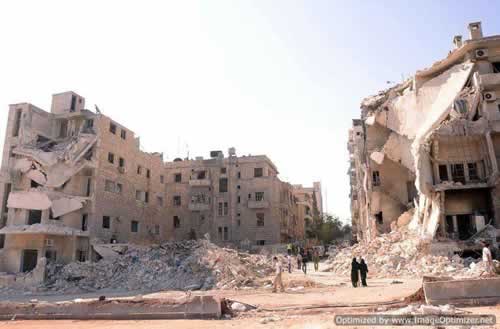 Jour après jour, la campagne de destruction se grave dans la chair de la ville. Un obus de mortier qui fait éclater une salle à manger avec ses occupants semble tout à coup un désastre de seconde catégorie. Non loin, des bombes de 500 kg larguées par des jets, ou d’énormes barils d’explosifs largués par des hélicoptères, écrasent ou décapitent des immeubles entiers.