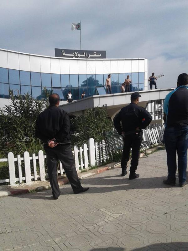 Le siège de la wilaya de Bouira est actuellement le théâtre d’une action désespérée. Plusieurs pères de familles, ils seraient au moins quatre, se sont hissés sur une terrasse de l’édifice. Torses nus et répartis sur cet espace en surplomb de l’une des entrées du siège wilayal, les protestataires espèrent par leur action obtenir des solutions à leurs problèmes sociaux, notament celui du logement. La police nationale et les services de la protection civile se trouvent sur les lieux et sont en pourparlers avec les protestataires. Des témoins nous disent craindre des gestes irréparables et nous assurent que les protestataires seraient en possession d’armes blaches et de combustible.